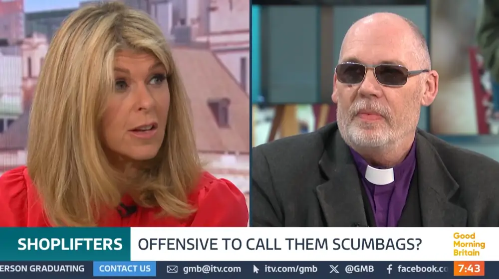 Bishop Mick was invited onto Good Morning Britain to discuss the question; “Is it offensive to call shoplifters scumbags?”