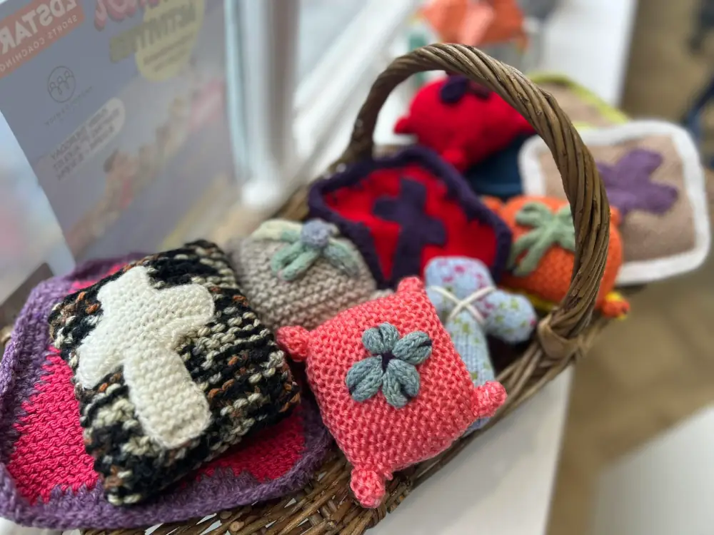Knitted crosses given away for free at the cafe